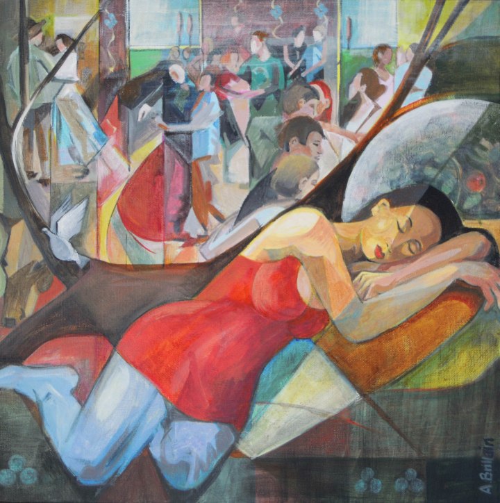 As she sleeps her mind is creating pictures of dancing, a country scene, animals and birds. These are flashes of recognition yet tantalizingly ephemeral.