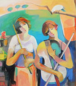I have called this painting “Shut your eyes and listen” as one of the noticeable things about this strange year has been the increase in bird song. Humans make so much noise and living near a main road, we have traffic, sirens, wheelie suitcases going to the station. The birds were living their parallel life and probably making the same amount of noise but we couldn’t hear it. Oil on linen. 55 x 48cm