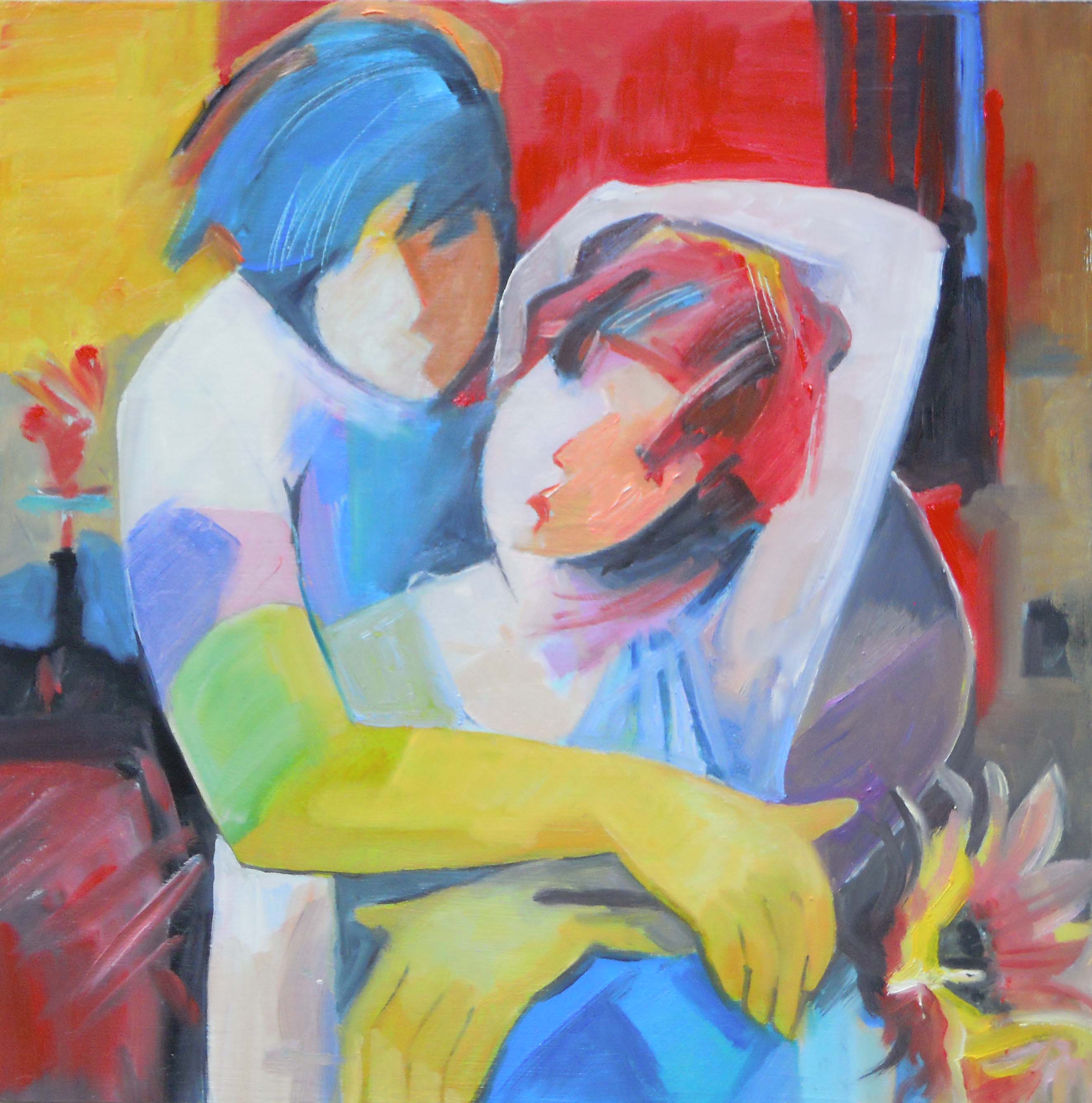 This oil painting is more abstract than some of my past paintings but very enjoyable to do. I decided that although it is only 30 x 30cm I would do it in oils to keep the vibrancy of the colours plus I love the smell of the paint. It was so hot today the paint was nearly sliding off the board!