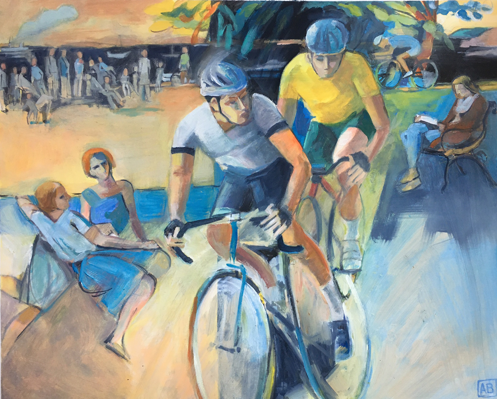 There is so much activity in local parks at the moment I wanted to capture in one painting what these open spaces have meant to people in the last year. Although each knot of people is in their own bubble, there is a unity about the overall use of the space. SOLD