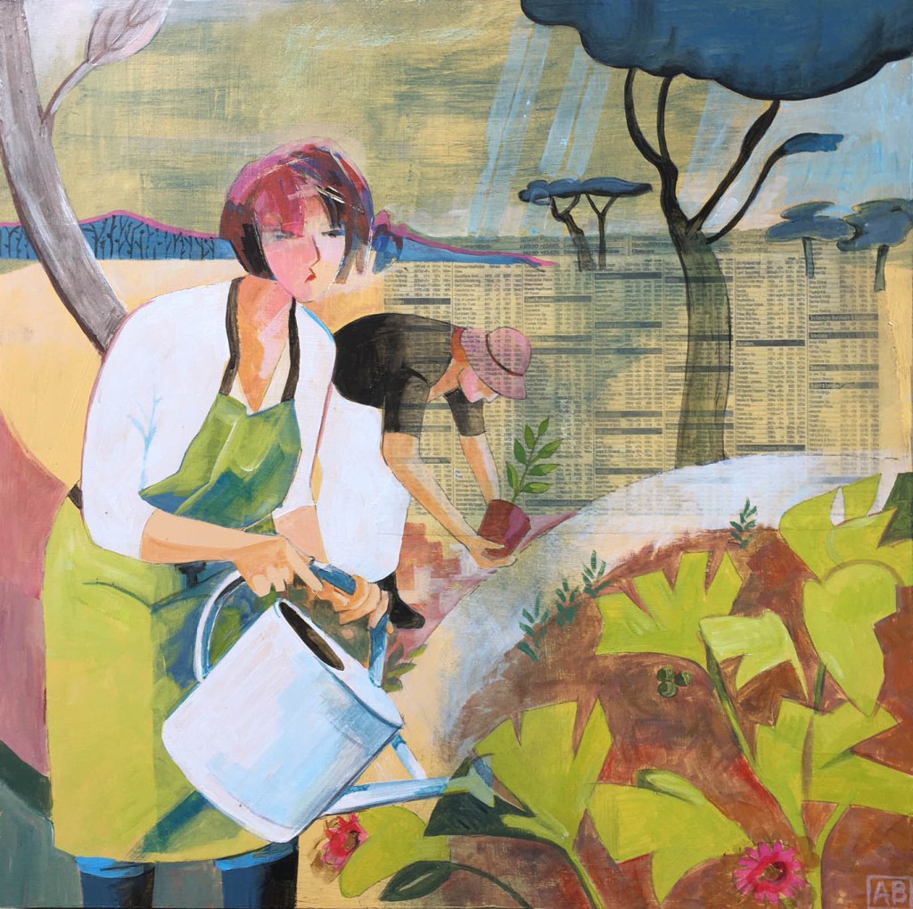 The fifth painting in my theme for this year about women multi-tasking their way through a day