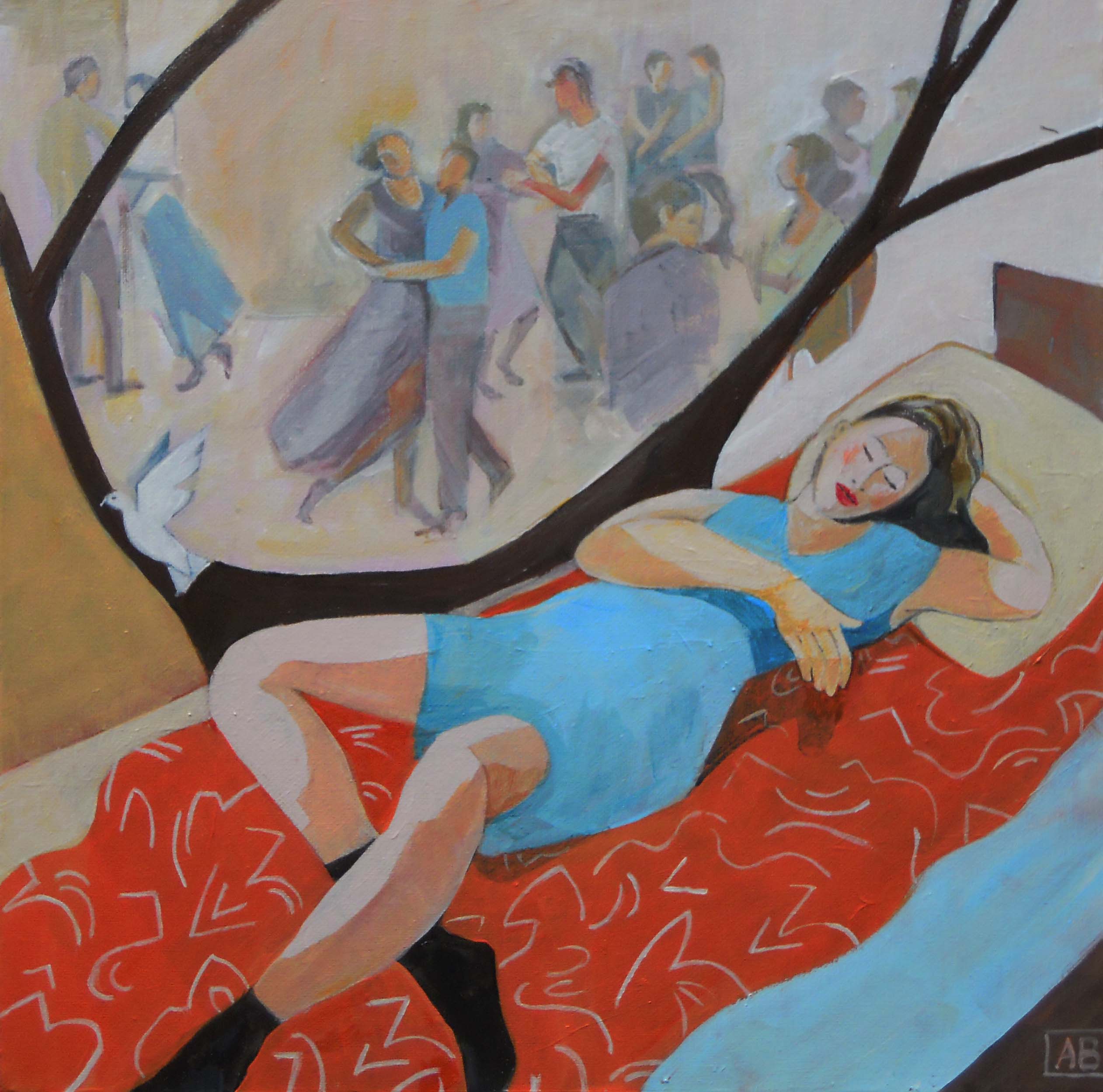 In dreams I find I cannot go through a doorway, I’m not sure if there’s any colour and all sorts of people I know are mixed up together. I have tried to convey this uncertain quality in my painting.