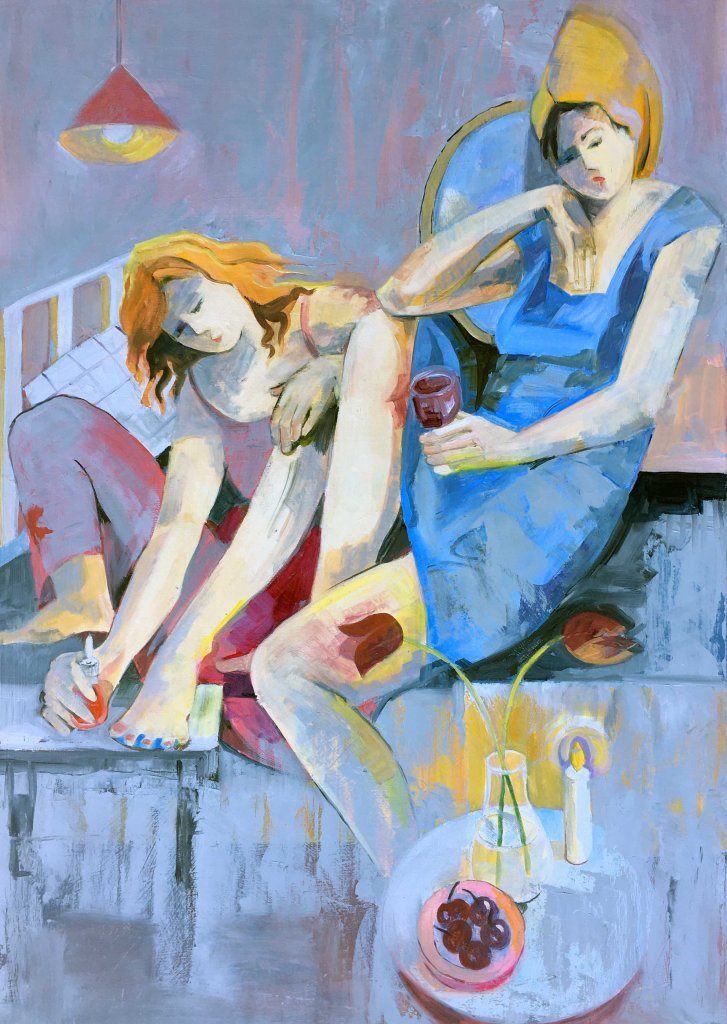 Each work I create has a search for “rightness” – an attempt to solve complex and often self-imposed compositional problems. They often have a tension below the surface. I work mainly in oil or acrylics on board. People fascinate me but I’m not sure that I made a conscious decision to make people central to my work or if this subject chose me. I have a Diploma in Art and Design and worked for several years as a graphic designer and illustrator before finally returning to my first love of drawing & painting in 2008. I have taught art to children and adults and currently offer one-to-one workshops from my home studio in West Sussex. I am a Member of the Society of Women Artists (SWA) and exhibit in London and the South.