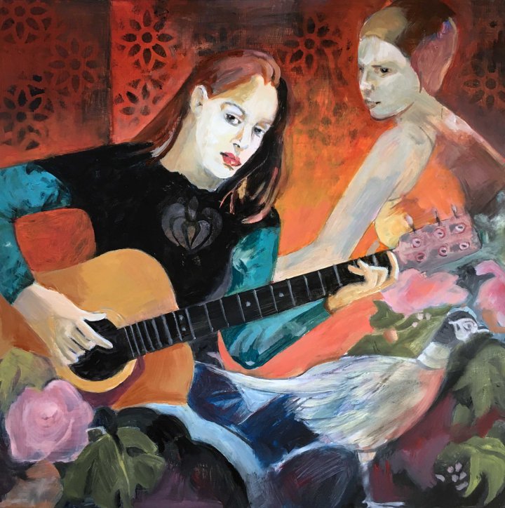 “My Kind of Music” is 39 x 39cm, painted in oil on a wood panel.