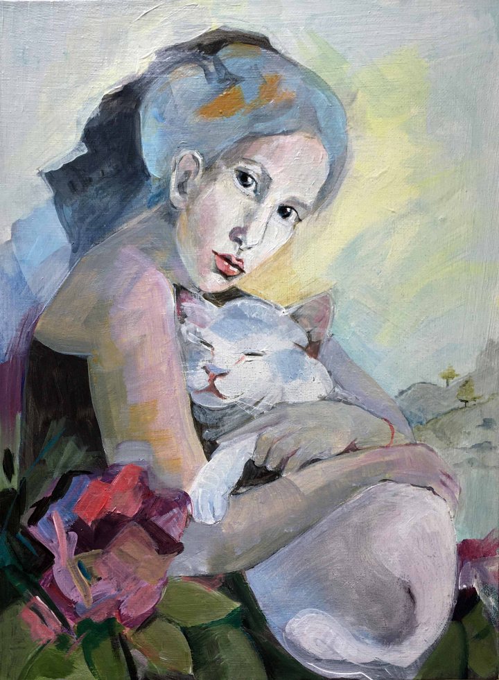 “Keep calm and hug the cat” Acrylic on canvas 40 x 30 cm