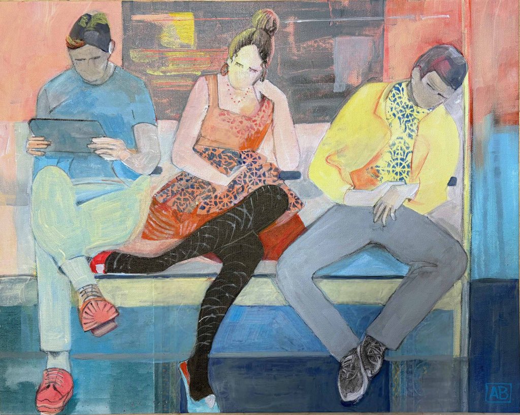 “Joined by Monday morning” is an acrylic and charcoal painting 40 x 50cm.