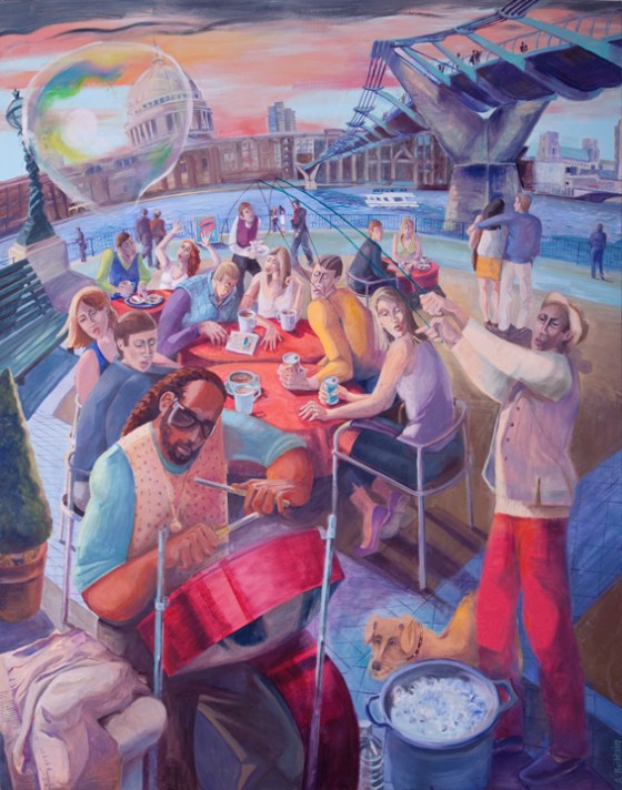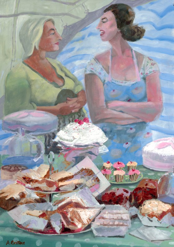 In my local park there was a festival and people set up tents to sell home made goods. On one stand were some delicious cakes but the two women were so engrossed in their conversation, the cakes were having to sell themselves. Oil on board 80 x 59cm SOLD